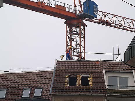 Nordhausen (nnz). Am Pferdemarkt in Nordhausen hat der Abriss der Plattenbauten von WBG und SWG begonnen. Dabei kommt schwere Technik zum Einsatz, doch ganz ohne Mensch geht auch diese Arbeit nicht. Diesen Schnappschuss machte die nnz heute morgen.