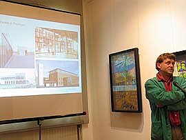 Mehr als 40 Architektinnen und Architekten der Region sind gestern Abend auf Einladung der Oberbürgermeisterin Barbara Rinke (SPD) ins Kunsthaus Meyenburg gekommen. Dort wird zurzeit eine Hundertwasser-Ausstellung gezeigt. Thema der Veranstaltung: Hundertwasser und die Auswirkungen auf die heutige Architektur, den gleichnamigen Vortrag hielt Professor Dirk Donath von der Bauhaus-Universität in Weimar (siehe Foto).