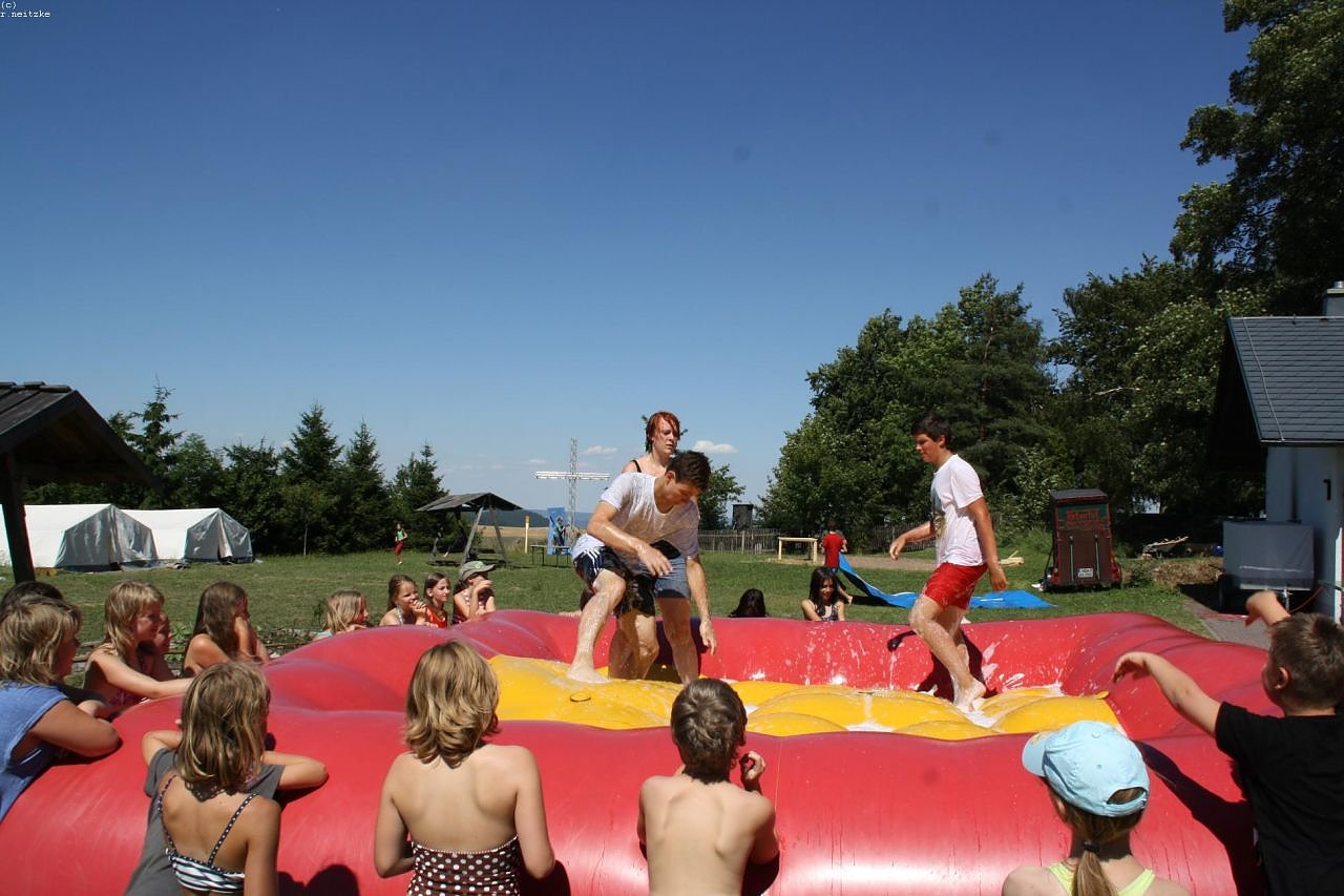 Autor: redDas gesamte Gelände, dass auch eine Großküche und Sanitäranlagen und 6 moderne Bungalows für Familien mit kleineren Kindern umfasst, hat der KILA komplett für eine ganze Woche reserviert.