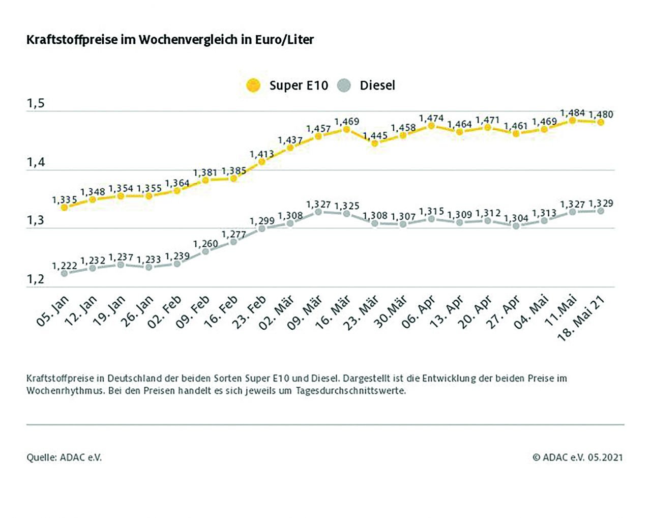 Für Dieselfahrer ist eine Tankfüllung diese Woche dagegen geringfügig teurer. Ein Liter Diesel kostet aktuell 1,329 Euro und damit rund 0,2 Cent mehr als vor einer Woche.