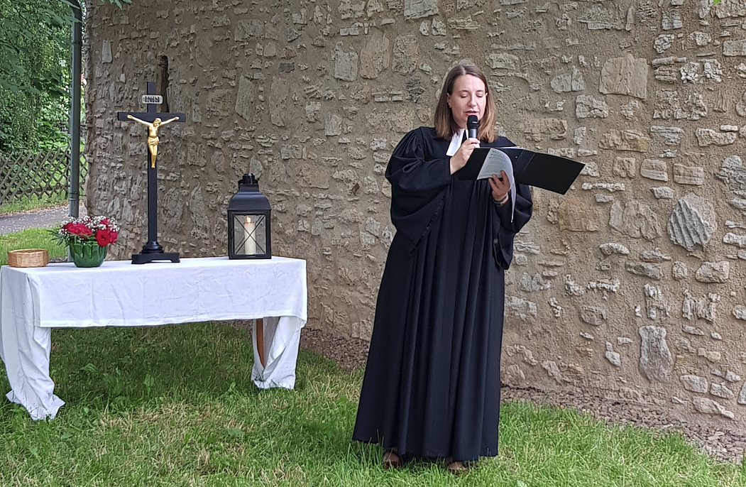Autor: redDer 23. Juli wird als der Tag in die Geschichte des kleinen mittelalterlichen Gotteshauses eingehen, an dem es wieder die erste Andacht nach rund 200 Jahren gab, freut sich die Förderkreisvorsitzende Regina Englert. Viele ließen sich im Anschluss an die Andacht noch einzeln segnen und nutzen die seltene Chance das kleine Gotteshaus von innen zu besichtigen. Noch kann die Gemeinde nur im Spettelgarten feiern, die Kapelle selbst ist noch nicht so weit saniert, dass es im Innenraum möglich wäre. Und doch ist es ein wunderbarer Neustart nach so langer Zeit. Der Niedergebraer Posaunenchor spielt, als Pfarrerin Annegret Steinke den Reisesegen pünktlich kurz vor Ferienbeginn spricht. Reisende von überall her haben sich dazu versammelt.