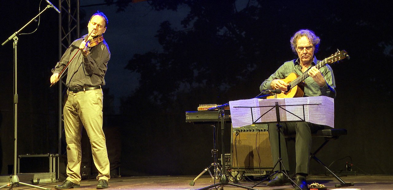 Falk Zenker und Florian Mayer entfesselten ein wahnwitziges virtuoses Zusammenspiel, schwelgten verträumten Fantasien und würzten das Ganze mit spontanem humorigem Entertainment. Auch ein kleiner Regenschauer tat dem Konzert keinen Abbruch und begeisterte das Publikum
