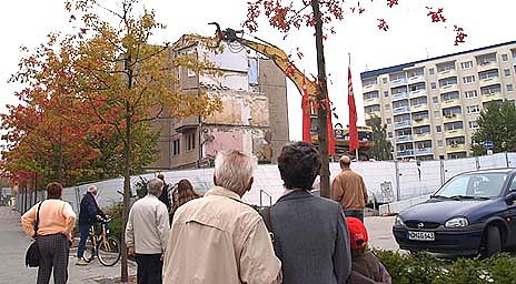 Und das wollten sich viele Schaulustige nicht entgehen lassen. An dem noch verbleibenden Block krallten sich die Baggerzähne und verschrotteten einstige Wohnzimmer, Küchen und Bäder.
