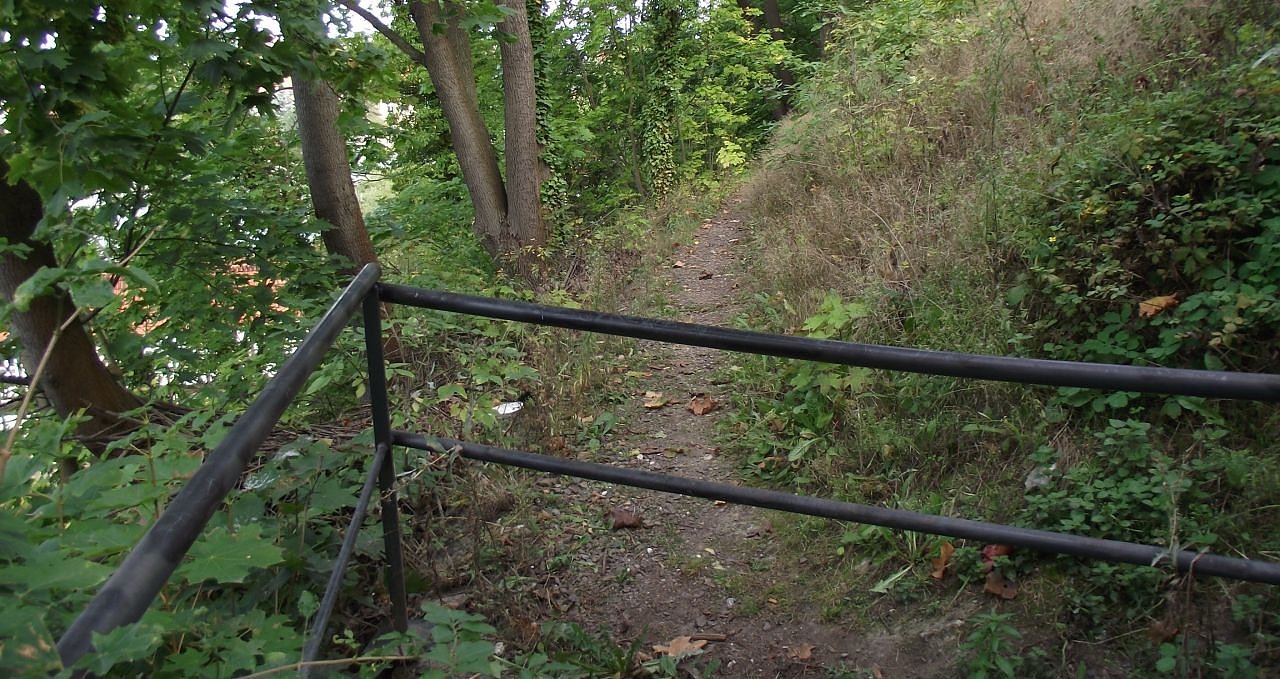 Wenige Meter ab Wassertreppe Richtung Altstadt endet der Johanniswall. Dahinter ein enger Pfad neben einem abschüssigen Hang. Endpunkt des Walls wäre die Barfüßerstraße in Höhe der Gaststätte "Felix" gewesen. (Foto: Kurt Frank)