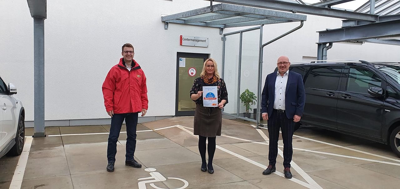 Die Parksituation ist für mobilitätseingeschränkte Menschen wie zum Beispiel Rollstuhlfahrende, Verkehrsteilnehmende mit Rollator und auch mit Kinderwagen erfreulich. Ob auf dem Parkdeck oder in der Tiefgarage – Menschen mit eingeschränkter Mobilität finden beim Abstellen ihres Fahrzeugs in der Marktpassage sehr gute Parkmöglichkeiten., so Hoffmann. Anjane Wallenta und Torsten Pietzsch vom Centermanagement freuen sich sehr über das Testergebnis und das Prädikat Sehr gut. Wir haben bereits beim Bau des Centers auf Barrierefreiheit bei der Gestaltung der Parkplätze geachtet, dass ist heute ein Mehrwert für unsere Kunden.