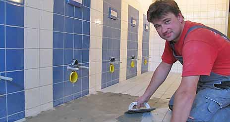 Noch bis Sonnabend bringen mehr als 10 Firmen aus der Region vor allem den Essens- und Hortbereich im Untergeschoss auf Vordermann und modernisieren die Toilettenanlagen des in den 60iger Jahren erbauten Schulhauses. Die Arbeiten hatten vor rund drei Wochen begonnen. Hubert Liesegang vom städtischen Bauamt: Die Rohbauarbeiten sind bis auf den alten WC-Raum im 1. Obergeschoß fertig. Auch die Heizungsanlage ist wieder in Betrieb und alle Verteilleitungen im Keller wurden neu verlegt und isoliert. Ebenso sei die Sanitärinstallation im Erd– und Kellergeschoß komplett erneuert worden. Die Montage der Toilettenkörper und Waschbecken erfolge dann am Freitag und Samstag, so Liesegang weiter.