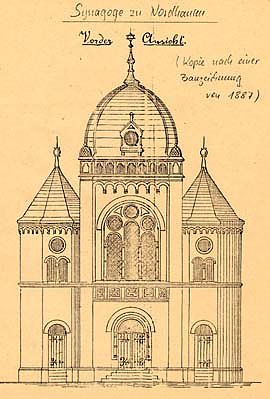 Der Ort des ursprünglichen Eingangs zur Synagoge kann nur geschätzt werden – er liegt innerhalb des Wohnhofes der Häuser in Sichtweite des in den 1980-iger Jahren errichteten Gedenkstein für die Synagoge in der Wolfstraße/Ecke Pferdemarkt. Am 12. und 13. September 1845 war die Synagoge eingeweiht worden. Der neoromanische Saal, der westliche Vorbau mit Kuppel und mit den neoromanischen und neobyzantinischen Bauelementen verliehen dem Bauwerk ein imposantes Aussehen. Zu jener Zeit war der junge Kantor Kurt Singer Leiter der Nordhäuser Synagoge und lebte mit seinem Vater Eduard im Gemeindehaus.