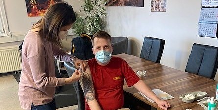 Susanne Germer impft Patrick Saatmann (Foto: nnz)