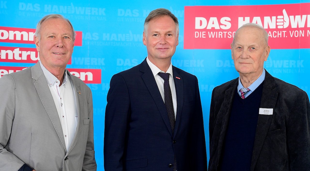 Die drei Präsidenten des Thüringer Handwerkstag: Rolf Ostermann, der von 2001 bis 2012 THT- Präsident war, Stefan Lobenstein, seit 2012 der aktuelle Präsident, und Wolfgang Bachmann, unter dem der THT 1992 gegründet wurde (von links nach rechts) (Foto: Barbara Neumann)