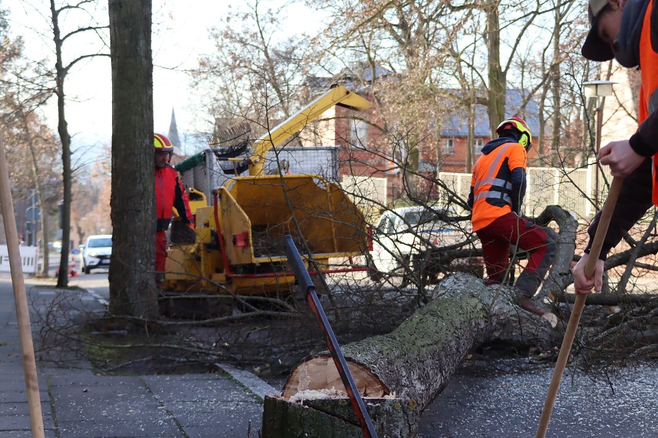Grund ist der Baubeginn der Gemeinschaftsmaßnahme von Stadt Nordhausen, Stadtentwässerungsbetrieb, Wasserversorgung Nordhausen und der Nordhausen Netz GmbH, bei der die Riemannstraße grundhaft ausgebaut werden soll. In Vorbereitung der Maßnahme, die neben der Neuverlegung der gesamten Ver- und Entsorgungsleitungen auch die Neuorganisation der notwendigen Verkehrsflächen, wie Fahrbahn, Radweg und Pkw-Stellplätze auch die Gestaltung der Grünflächen und die Erneuerung des Baumbestandes vorsieht, begann heute bereits die Fällung von geschädigten Lindenbäumen. Der Verkehr wurde mittels Ampel geregelt.