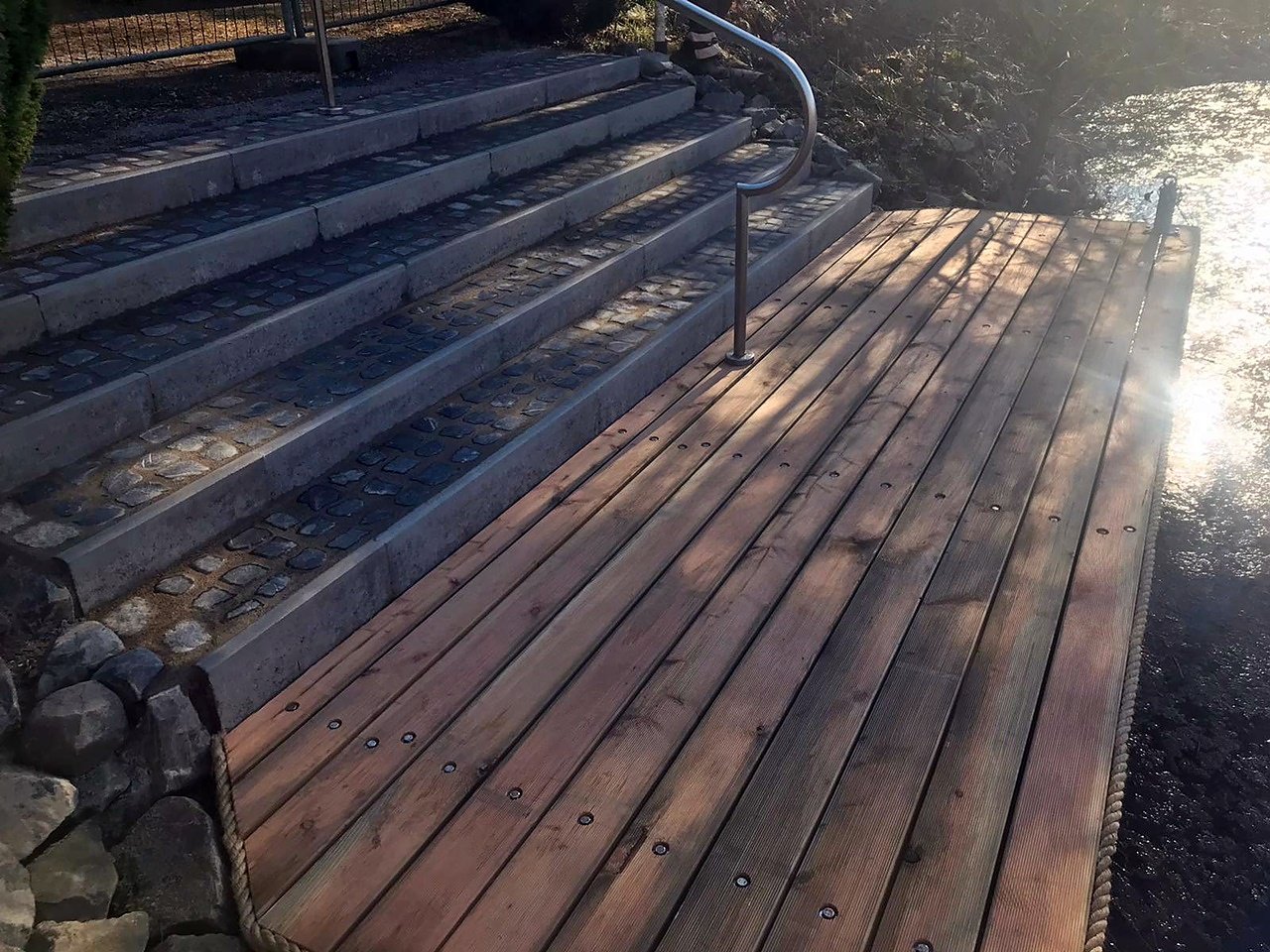 Anfang Februar hat der Bauhof mit dem Abriss des Bootssteges am Gondelteich begonnen; alles war verwittert. Anschließend wurden Steinstufen gesetzt und alles ausgepflastert, berichtet Tino Scharfe. Der Steg selbst wurde mit umweltresistenten Douglasienholz erneuert und passt gut in das Gesamtbild des Gondelteiches. Eine Freigabe des Bootssteges soll am kommenden Montag erfolgen. Auch in Ilfeld hatten die Mitarbeiter des Bauhofes eine größere Baustelle. Eigentlich sollte die Brücke zur Weidentalswiese abgerissen werden, berichtet der Bauhofleiter. Die ist jedoch bei den Wanderern sehr beliebt, deshalb entschloss man sich die Brücke zu reinigen, ein neues Geländer anzubringen und die Anfangsstufen und Lagerbalken zu sanieren. Nun kann sie wieder gefahrlos überquert werden. Der Wanderweg wurde vom Grünteam des Harztor-Bauhofes freigeschnitten und Totäste beseitigt.