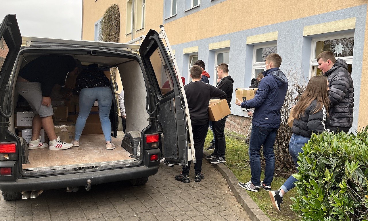 In Erfurt werden die Güter dann dem ukrainischen Verein übergeben, der den weiteren Transport zur ukrainischen Grenze übernimmt und in die Hände der ukrainischen Feuerwehr übergibt.
