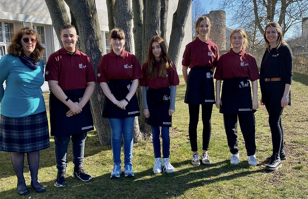 Neben zehn weiteren Teams, tüfteln auch Die Kexse Xenia, Samira, Michelle, Melissa, Lola und Emanuel von der Petersbergschule Nordhausen mit ihrer Teambetreuerin Anne Watterodt schon eifrig an Rezepten und Ideen für einen leckeren Smoothie, zwei Aufstriche – herzhaft und/oder süß, eine kreative Müslimischung aus möglichst vielen frischen Zutaten und eine Burger-Variation mit selbst gemachten Burger Buns – so die ganz konkrete Aufgabenstellung des Wettbewerbes. Auch diesmal sind im Wetteifern um den Schülerkochpokal wieder Teamgeist, Experimentierfreude, Bewusstsein für Klima und Nachhaltigkeit, kulinarische Heimatkunde und handwerkliches Geschick bei der Jury gefragt. Federführend agieren hierbei die Thüringer Profiköche Claus Alboth von Alboth´s Welt und Mike Oertel, Ausbilder für das Gastgewerbe in der Jugendberufsförderung Erfurt.