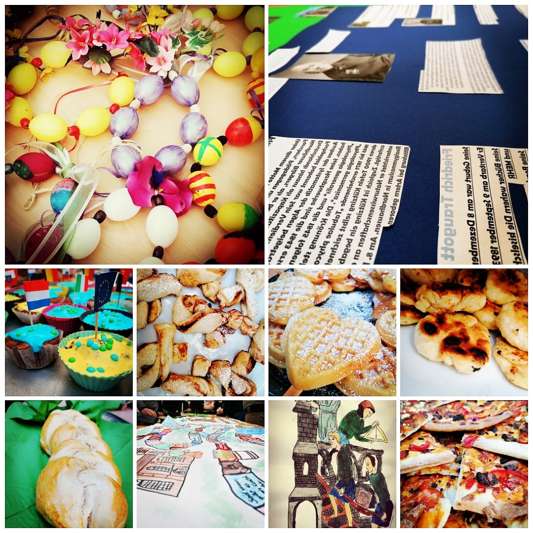 Die drei Praxisklassen 7p,8p und 9c hatten sich Ostern auf die Fahne geschrieben. Die Schüler bastelten Ostereierkränze, backten geflochtene Hefezöpfe und stellten leckere Orangen-Apfel-Möhren-Marmelade her. Daneben erfuhren die Schüler wissenswertes über Ostertraditionen anderer Länder.