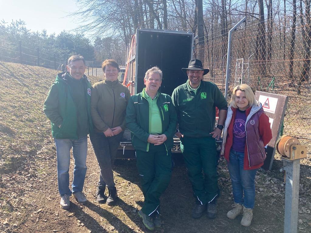 Gegen 17:00 Uhr trifft ein fünfköpfiges Einsatzteam der Stiftung für Bären am 16. März im Alternativen Bärenpark Worbis ein. Hinter ihnen liegt eine nervenaufreibende Rettungsaktion aus dem Kriegsgebiet in der Ukraine. Drei Tage im Ungewissen, zwei schlaflose Nächte und über 2000 Kilometer liegen hinter dem Team um Einsatzleiter Bernd Nonnenmacher. Doch es hat sich gelohnt – insgesamt konnten drei Bären aus der Ukraine gerettet werden. Zwei von ihnen, die einjährigen Braunbären Popeye und Asuka, werden vorerst im Thüringer Tierschutzprojekt der Stiftung für Bären bleiben, die Kragenbärin Malvina findet im Tierschutzzentrum Weidefeld des Deutschen Tierschutz Bundes ein neues Zuhause.