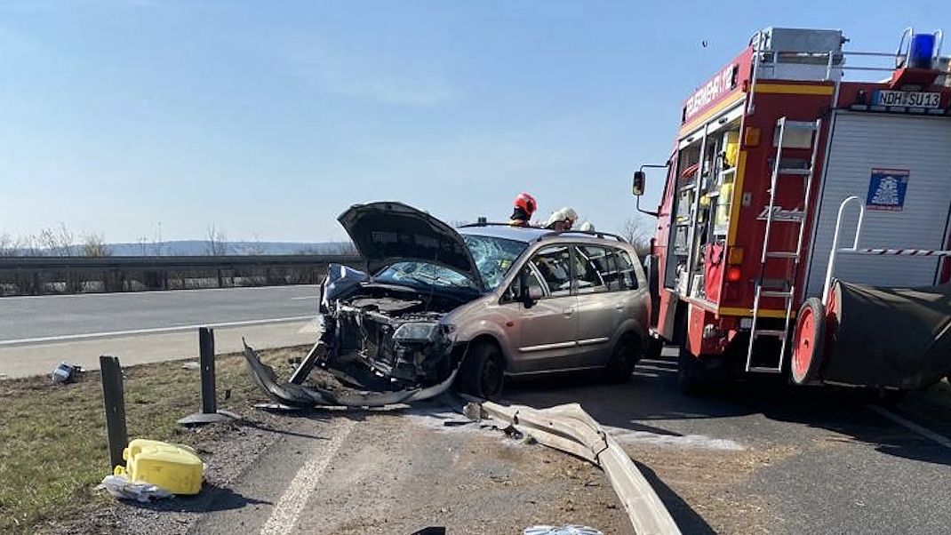 Der 35 jährige Fahrzeugführer kam mit seinem Fahrzeug auf der A38 in Höhe der Ausfahrt Nordhausen Süd nach rechts von der Fahrbahn ab, kollidierte mit der Schutzplanke und kam anschließend in der Auffahrt zur A38 zum stehen.