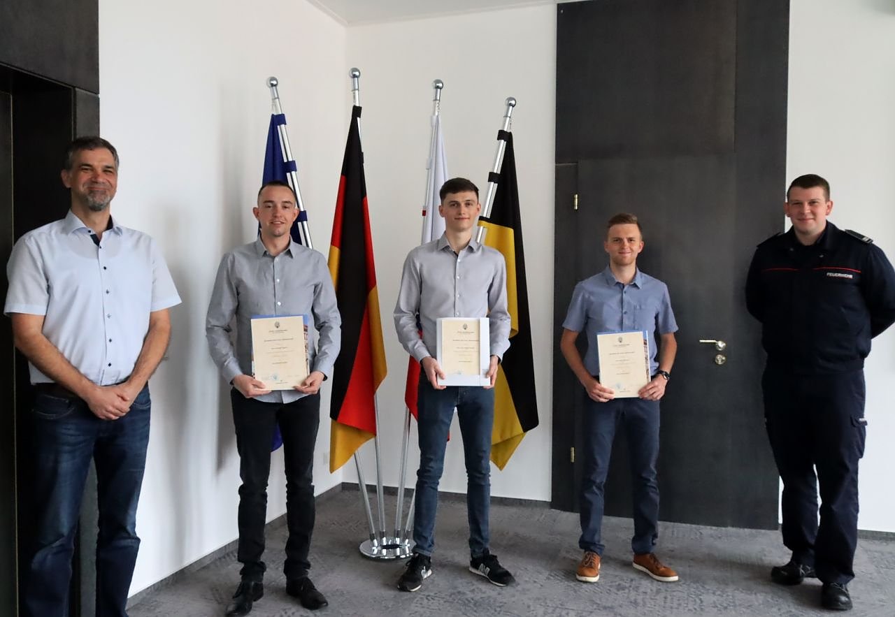 Drei Brandmeister-Anwärter - Christoph Eggerth, Jason Phillip Schneider und Niklas Spannaus (Foto: Stadtverwaltung Nordhausen)
