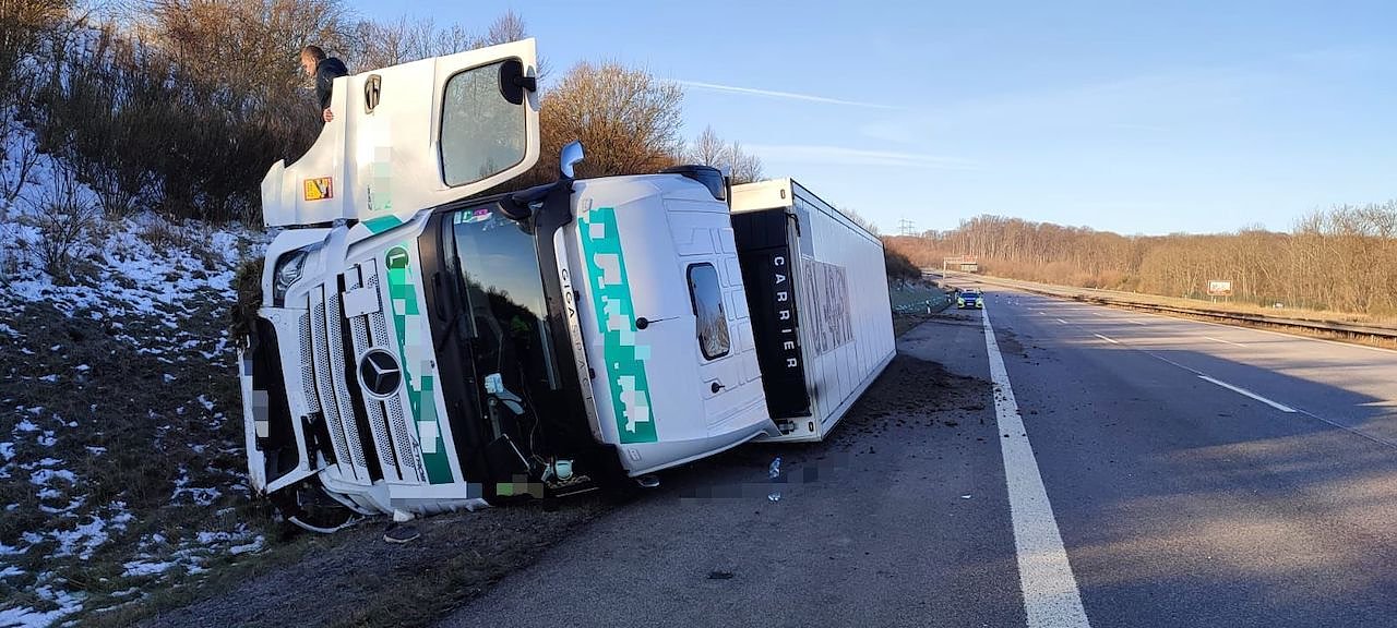 Sattelzug auf der Autobahn umgekippt