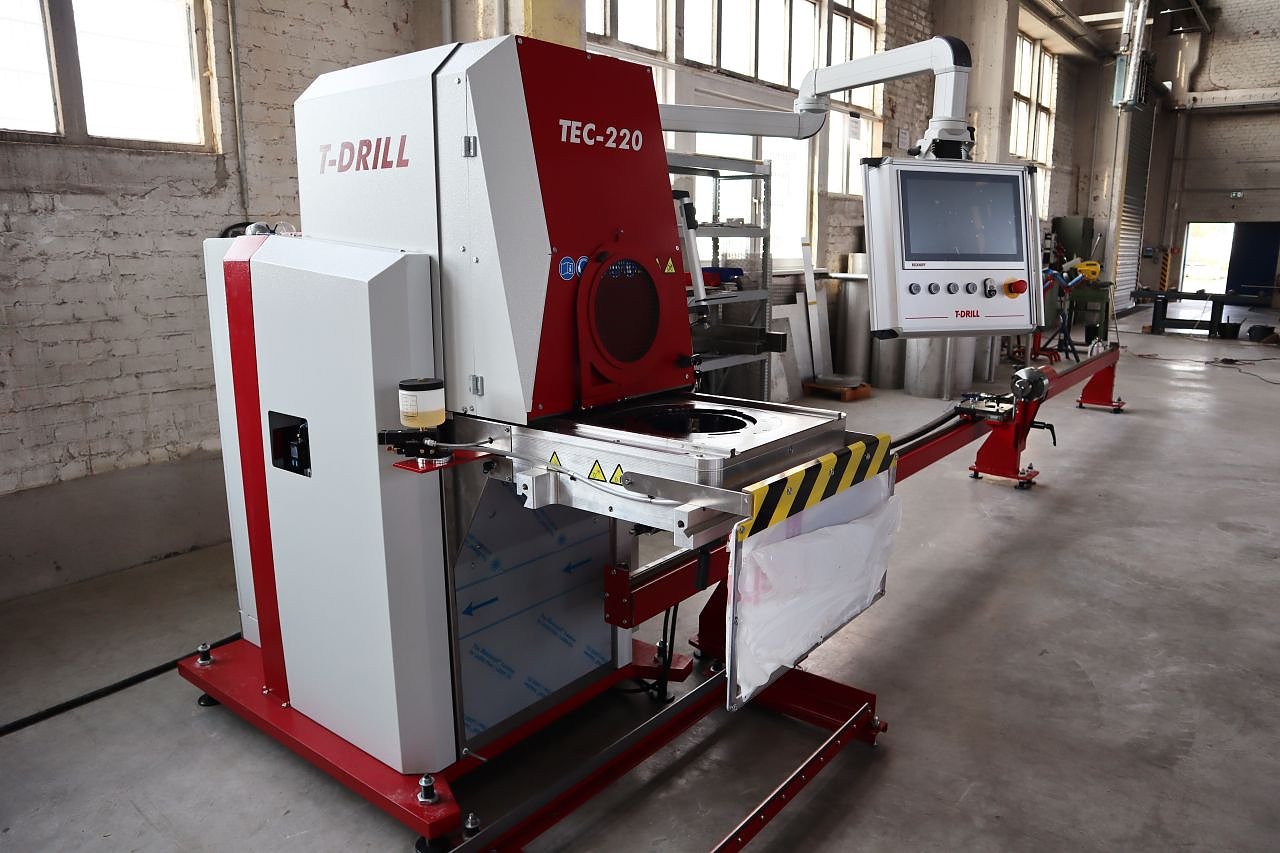 Lange musste das Team der Fertigung auf die neue Technik warten, deren Anschaffung einen enormen Fortschritt für die Produktion der Anlagentechnik bedeutet. Mit der Aushalsmaschine T-Drill TEC-220 und der Bördelmaschine F-400 können die Anlagenbauer von Schachtbau nun einen Großteil der Formteile selbst fertigen sowie die Rohrenden bördeln.