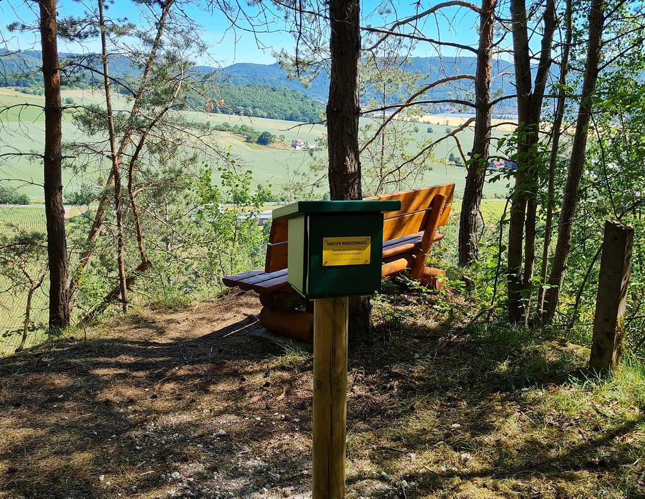 Nach der bleibenden Stempelstelle auf der Wache in Niedersachswerfen zum Gipskarstwanderweg wurde nun ein neuer Stempelkasten für die sammelnden Wanderer errichtet. Der Weg dahin war nicht einfach, aber die Jury überzeugte die Umgebung und die Landschaft, die einmalig im Südharz ist. Von der Stempelstelle aus kann man in Richtung Ilfeld und zum Poppenturm blicken, freute sich Katrin Schönemann über die Entscheidung der Jury. So wird auch der neu angelegte Feuersalamanderpfad für die Gäste interessanter und noch mehr Wanderer finden ihren Weg dorthin. Anfragen dazu gab es bereits aus anderen Bundesländern, berichtet die Ortschaftsbürgermeisterin. Noch bis zum 16. August ist die Wanderstempelstelle bei der Wolfsschleife im Steinbruch zu finden.