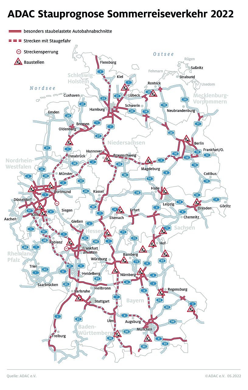 In wenigen Tagen endet das Schuljahr. Wenn sich die Schulen leeren, wird es auf den Fernstraßen voll. Mit dem Ferienbeginn in Thüringen, Bremen, Niedersachsen, Sachsen, Sachsen-Anhalt am kommenden Wochenende sind dann insgesamt in neun Bundesländern die Schulen geschlossen. Auch die deutschen Nachbarländer haben teilweise schon schulfrei...