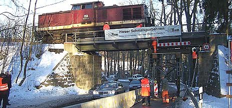 Nordhausen (nnz). Durch einen Verkehrsunfall wurde eine Eisenbahnbrücke der Harzer Schmalspurbahnen GmbH (HSB) in Elend so stark beschädigt, dass die Brücke für den Eisenbahnverkehr vorläufig gesperrt werden musste. Das gehört jetzt der Vergangenheit an.
