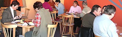 Ab sofort kann man montags bis samstags zwischen zwei Mittagsmenüs wählen. Der Preis für ein Essen beträgt 2,80 bzw. 3,00 Euro. Zudem gibt es täglich ein reichliches Imbissangebot auch das äußerst preisgünstig. Das Essen bezieht der neue Betreiber aus einer Nordhäuser Großküche. Die Klause ist täglich von 9 bis 14 Uhr und 17 bis 22 Uhr geöffnet. Norbert Schellknecht erwägt, am langen Behördendonnerstag seine Gaststätte eventuell durchgehend geöffnet zu halten. Zudem ist er für jede Anregung seiner Gäste dankbar. Die Wiedigsburgklause steht übrigens allen Bürgerinnen und Bürgern sowie den Freunden des Schul- und Vereinssports als Kantine zur Verfügung nicht nur den Mitarbeitern des Landratsamtes.