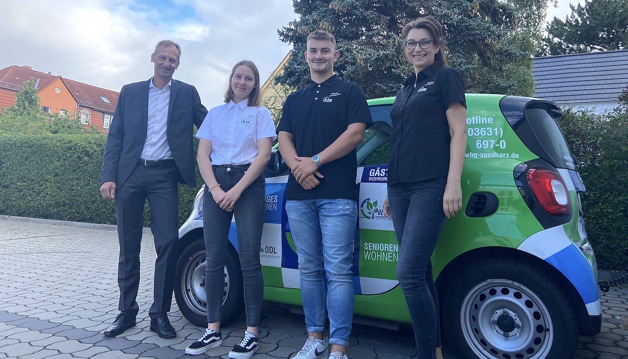 Damit befinden sich aktuell acht junge Menschen in unserer Genossenschaft in einer Ausbildung. Mit insgesamt fast 70 Mitarbeiterinnen und Mitarbeitern verfügen wir auch künftig über eine gute Ausbildungsquote und setzen damit unseren vor Jahren begonnenen Weg konsequent fort”, teilt der Vorstand der WBG mit. In diesem Jahr haben zwei junge Leute ihre Ausbildung erfolgreich absolviert, einer wurde übernommen. Jan Philipp Kruse hat seine Stelle als Objektmanager bereits im Juli angetreten und wird derzeit eingearbeitet, um ab September eigenverantwortlich ein Wohngebiet der WBG Südharz zu übernehmen.