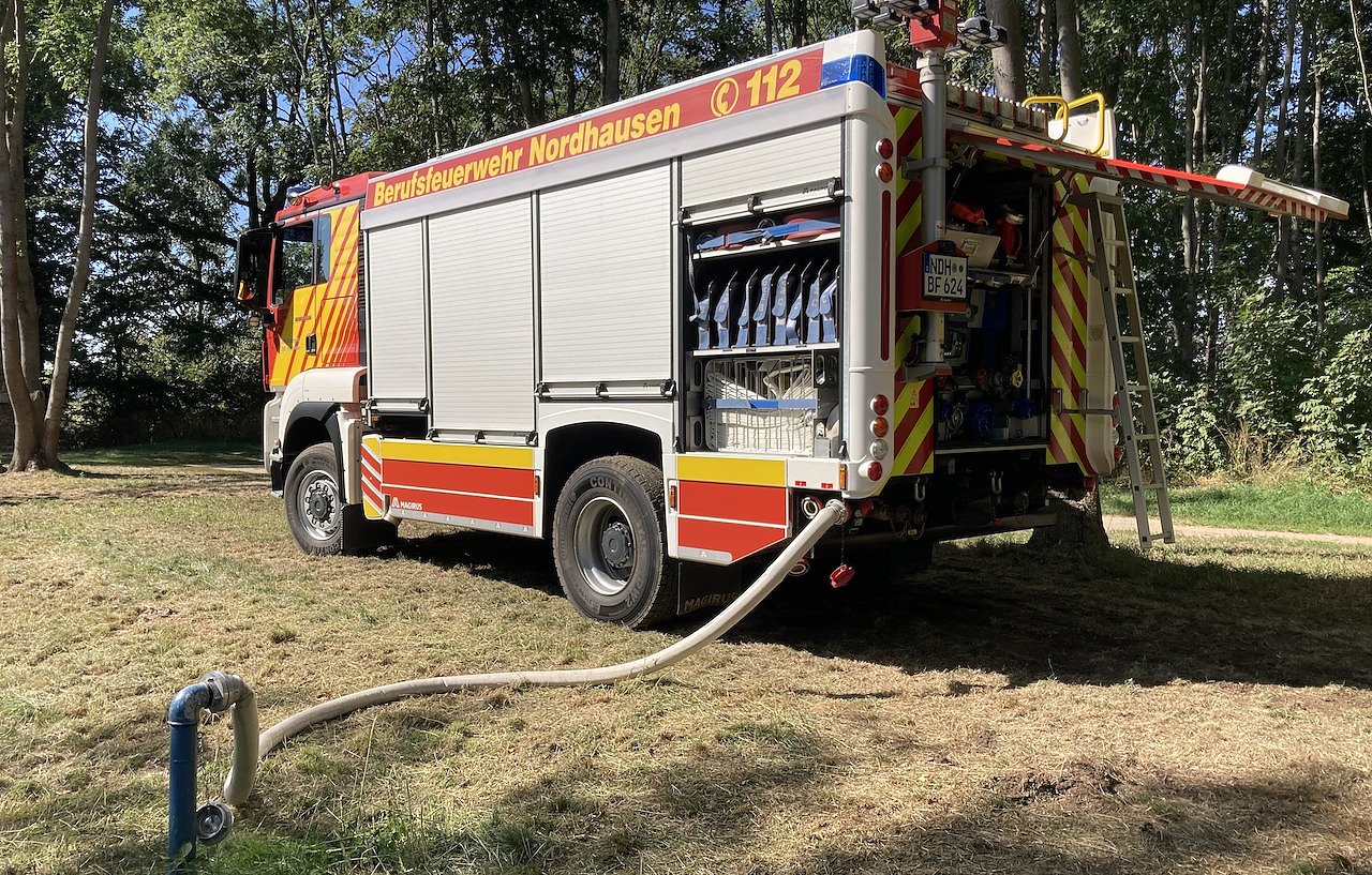 Im Juli betrug der durchschnittliche Niederschlag in Deutschland 35 Liter pro Quadratmeter, halb so viel wie in den vergangenen Jahren. Im Park Hohenrode musste deswegen jetzt die Zisterne händisch von der Berufsfeuerwehr Nordhausen aufgefüllt werden...