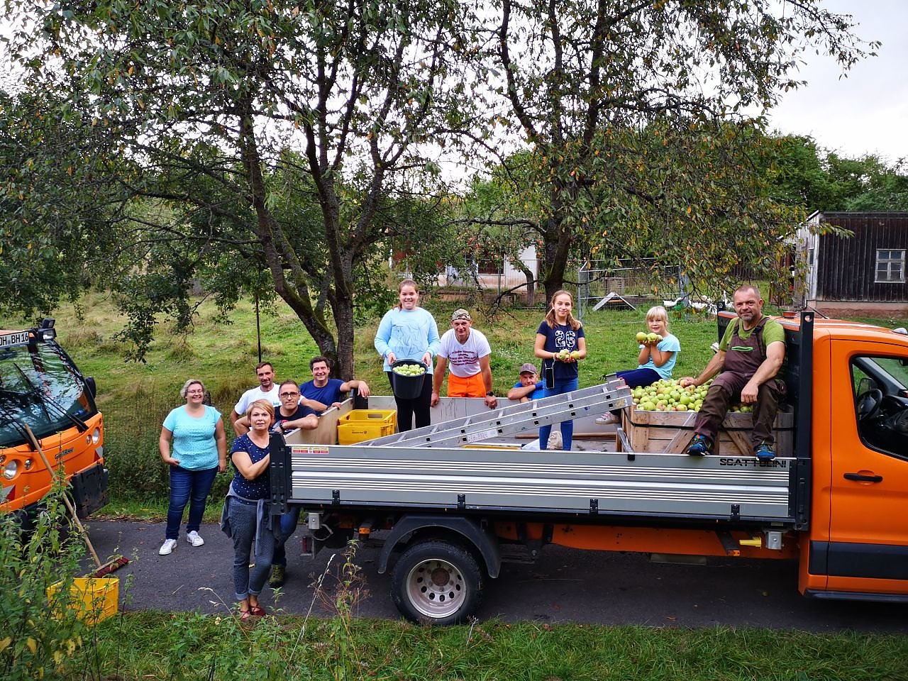 Archivbild aus 2021: Familien aus Harztor und Bauhofmitarbeiter sammeln Obst. (Foto: Gemeinde Harztor)