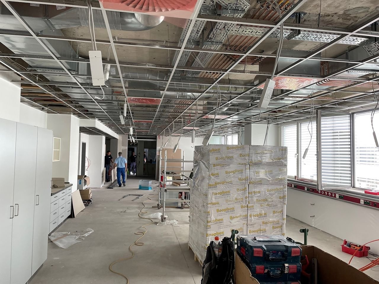 Auf den ersten Blick sehen der neu entstandene Operationssaal sowie der ihm angeschlossene Aufwachraum aus wie eine normale Baustelle in einem Klinikum. Schaut man genauer hin, dann entdeckt der Betrachter die baulichen Unterschiede. So mussten die Deckenelemente der beiden Räume komplett ausgetauscht werden, um die neuen dynamischen Lasten abzuleiten. Die modernen Technologien der Medizintechnik überforderten in ihrer konstruktiven Komplexität die baulichen Gegebenheiten, die aus der Bauzeit des Klinikums Ende der 1970er, Anfang der 1980er Jahre stammen. Dennoch will ich an dieser Stelle durchaus die Weitsicht der damaligen Planungen und deren Ausführung lobend erwähnen”, so Hebestreit.