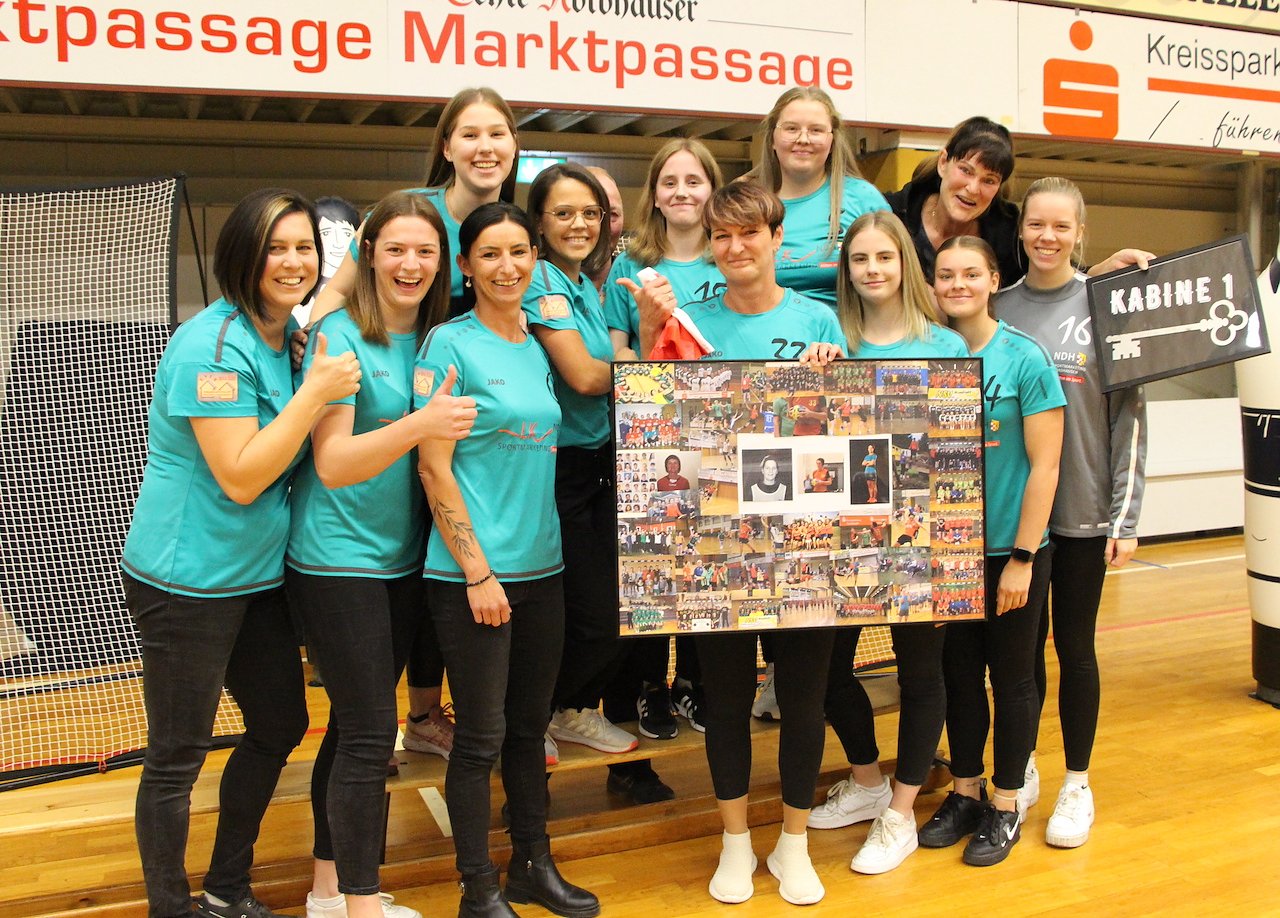 Am letzten Freitag bei der stimmungsvollen NSV-Saisoneröffnung präsentierte sich Claudia, die alle seit ihrem ersten Handballjahr nur als Teddy kennen, noch einmal in ihrem Dress mit ihrer Nummer 33 im Kreise ihrer Mannschaftskameradinnen. Da mussten beim Abschied schon einige Tränen unterdrückt werden. Danke Teddy für 40 Jahre, in denen du den Nordhäuser Handballsport maßgeblich mitgeprägt hast. Schade, dass wir dich nun nicht mehr auf der Platte sehen werden.