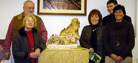 Das Kunstobjekt, welches der einmaligen Gipskarstlandschaft gewidmet ist, soll der Öffentlichkeit zugänglich gemacht werden. gemeinsam mit den Künstlerinnen überreichte es Volkshochschuldirektor Gerhard Tölle an den Bürgermeister der Gemeinde Niedersachswerfen. Jochen Napiralla will der Skulptur einen würdigen Platz in der Gemeindeverwaltung zukommen lassen.