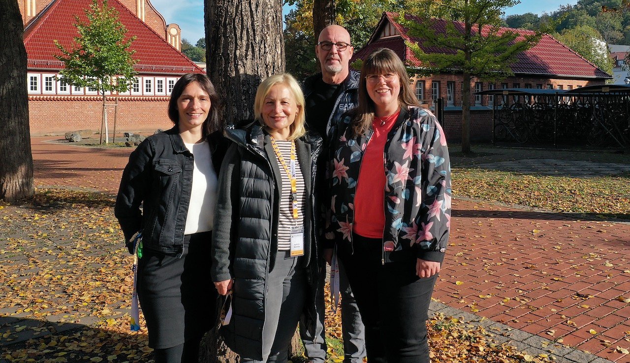 Freuen sich über engagierte Schülerinnen und Schüler: Die Sozialarbeiterinnen Diana Witzenhausen (li) und Anika Lier (re), Frau Materlik vom Landratsamt (Mitte) und Schulleiter Andreas Trump (Foto: H.Roeder)