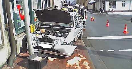 Nordhausen/Ellrich (nnz). Ein Unfall ereignete sich gegen Mittag in Ellrich. Direkt am Markt raste ein Auto auf den Bürgersteig und konnte nur noch von einem Mast gebremst werden. Die nnz mit Einzelheiten.