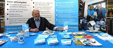 Der Weiße Ring bietet Hilfe durch Beistand bei Gerichtsverhandlungen und im Umgang mit Behörden. Bei materiellen Notlagen in Folge einer Straftat kann Unterstützung für Rechtsberatung übernommen werden, ebenfalls eventuelle Anwaltkosten. Psychologische und medizinische Beratung ist möglich. Wer Opfer einer Straftat geworden ist, sollte sich nicht schämen, sondern sich Hilfe holen. Der Weiße Ring ist rund um die Uhr unter 01803-343434 zu erreichen. Der Anrufer erfährt dort Name und Telefonnummer des Ansprechpartners vor Ort. Heute konnten sich Interessierte den ganzen Tag an einem Stand in der Südharzgalerie Informationen holen.