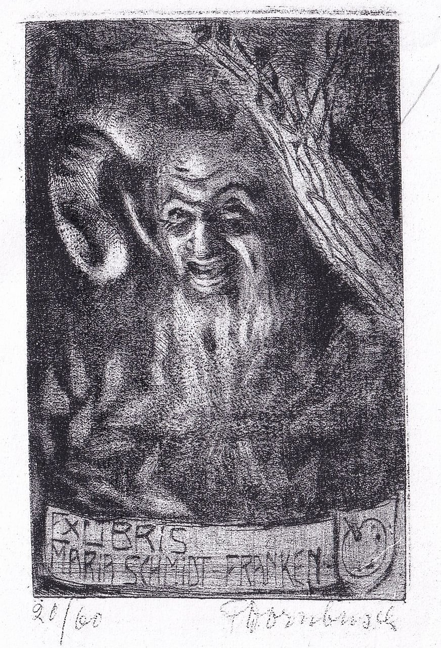 Friedrich Dornbusch, Grafiker und Maler, geb am 3. August 1879 in Königsberg, gest. am 31. Juli 1962 in Kiel, Exlibris des Künstlers (Foto: Heidelore Kneffel)