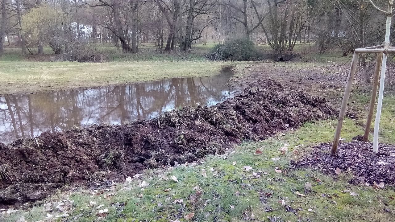 Mit Beginn der warmen Jahreszeit wird wohl so mancher Parkbesucher vor dem aktivierten Feuchtbiotop auf einer Bank verweilen und darauf hoffen, auch deren Bewohner zu erblicken. Bis dahin sind auch die Erdhaufen bereinigt. (Foto: Rosaline Frank)