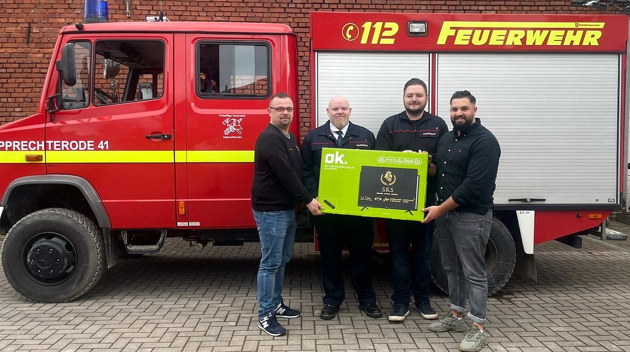 Gestern nun erfolgte die Übergabe durch Shakashiro, der mit seinem Unternehmen S.K.S. Services das benötigte Mediengerät sponsert. In Würdigung für diese Förderung und Unterstützung verlieh Ortsbrandmeister Marco Engelhardt als Dank und Anerkennung eine Urkunde.