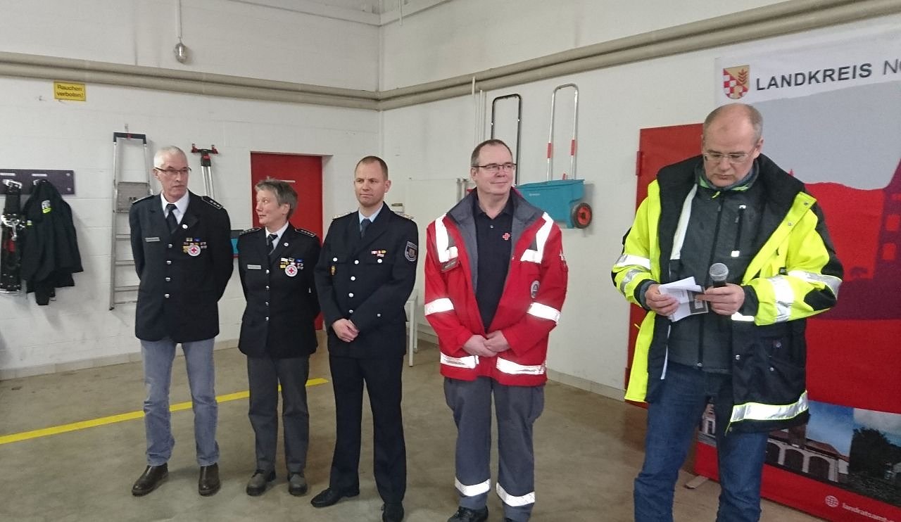 Mit Martina und Hans-Joachim Rockstroh verabschiedet sich ein Dreamteam des Deutschen Roten Kreuzes aus dem aktiven Dienst, das als Zug-, und Gruppenführer 33 Jahre lang den Katastrophenschutz gestärkt hatte. Christian Arend von der Freiwilligen Feuerwehr Bleicherode wechselt nach sieben Jahren als Zugführer mit dem neuen Einsatzwagen nach Ellrich.