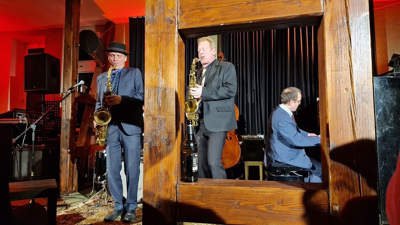 Als die erledigt war, konnte wieder gezupft werden und die fünf Herren, allen voran die beiden Tenorsaxophonisten Bernd Suchland und Patrick Braun, schenkten dem neugierigen und zum Teil auch sachkundigen Publikum ein furioses Konzert. Für rund zwei Stunden muss den wahren Jazzern der amerikanische Traum sehr, sehr nahe gekommen sein.