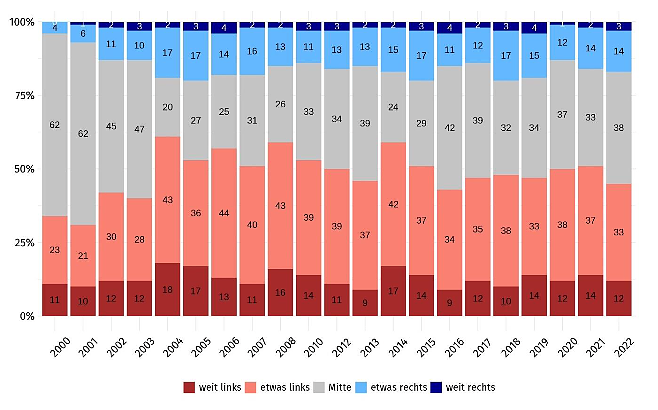 Politischer Standpunkt der befragten Bürger: die große Mehrheit empfindet sich als links ausgerichtet (Foto: Thüringen Monitor)