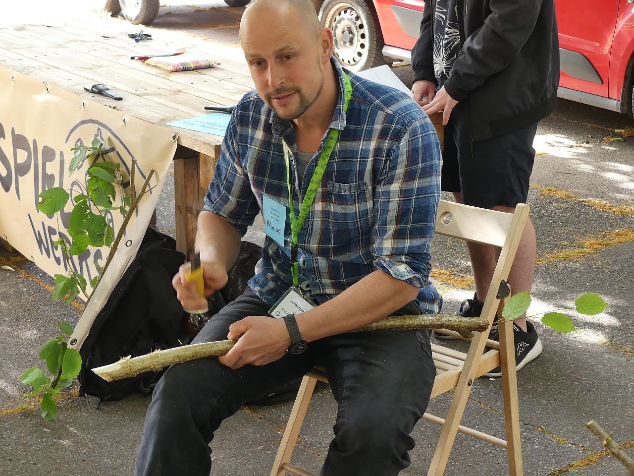 Wer sich auf den Tag vorbereiten möchte, der kann mit mir vorher Pilgerstöcke schnitzen, informiert Alexander Ibe von der SpielWerkstatt. Am Freitag, dem 23. Juni, um 15 Uhr an der Blasii-Kirche und am Samstag, dem 24. Juni, um 10 Uhr beim Hoffest Schulze in Leimbach.