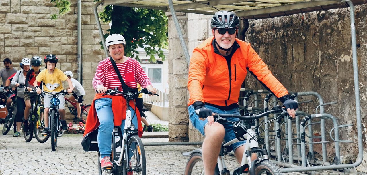 Autor: redKnappe dreißig Radler fanden sich heute Vormittag vor dem Rathaus ein, um an der Aktion "Stadtradeln" teilzunehmen. "Bio-Radler" und Elektrisierte hielten sich in etwas die Waage und von Jungspund bis Senior war jedes Alter vertreten. Im Fahrerfeld fanden sich mit Bürgermeisterin Rieger und den Stadträten Trump und Prophet auch gleich drei Aspiranten auf das OB Büro, da hätte man fast schon ein vorgezogenes Kandidatenrennen machen können.