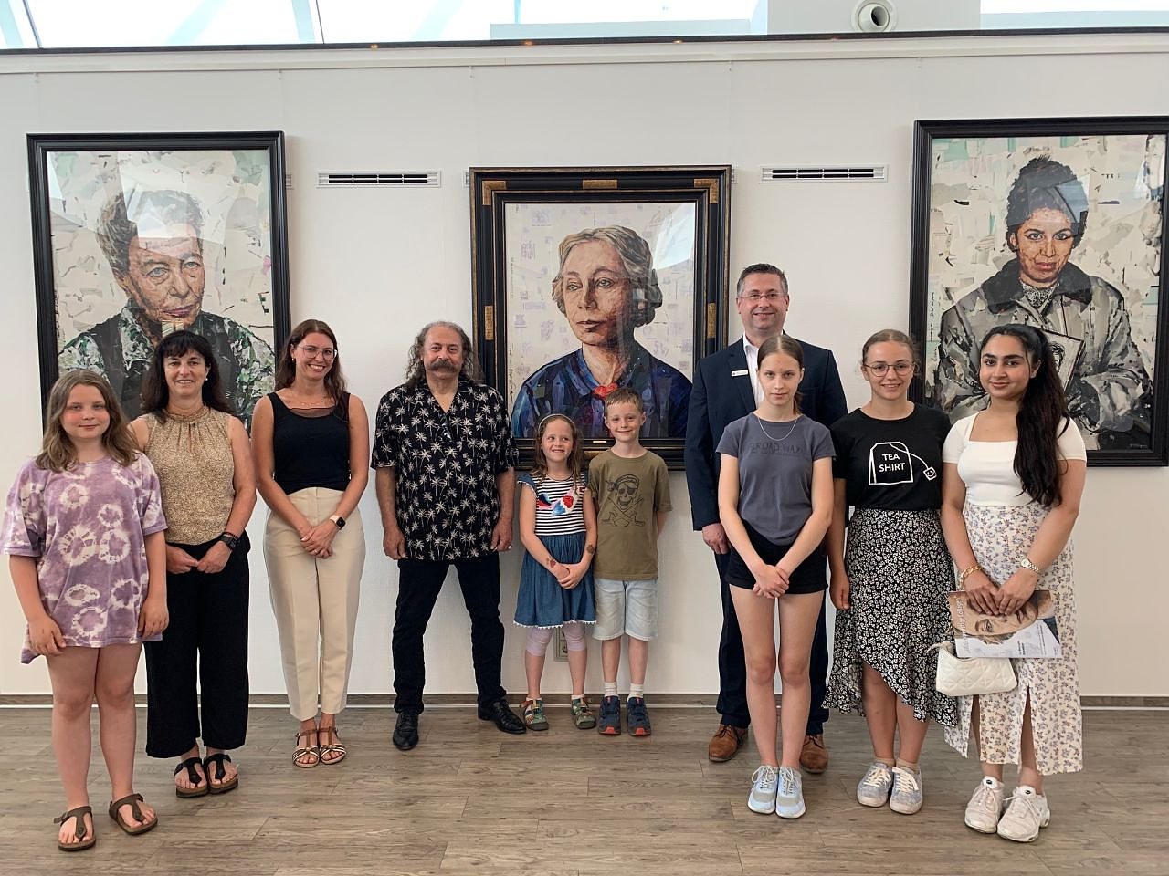 Stellvertretend nahmen Grundschulleiterin Frau Schreiber, die stellvertretende Schulleiterin der Regelschule Frau Koch und einige Kinder der Schule das Kunstwerk in Empfang. Nun muss in der Schule noch nach einem passenden Standort gesucht werden, bevor es dann endgültig in die Schule umzieht. Im Gespräch mit dem Künstler informierten sich Lehrer und Schüler über die sehenswerte und erstmals in Deutschland gezeigte Ausstellung. Dank des Ankaufs durch die Kreissparkasse kann dieses Kunstwerk nun in der Roland-stadt an würdiger Stelle verbleiben.