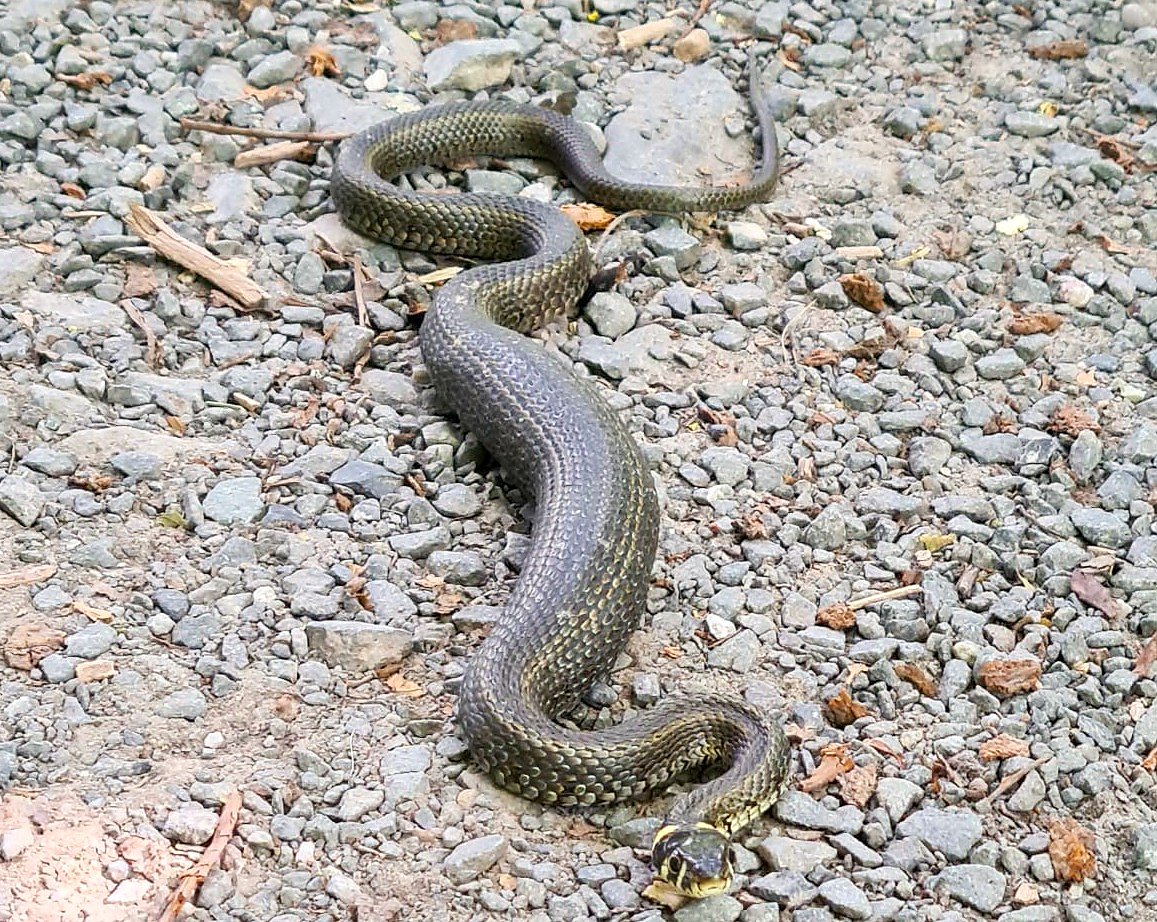"So hatten auch wir heute unsere erste Begegnung mit dieser ungefährlichen Schlangenart in freier Wildbahn. Ganz zufällig wurden wir auf ein junges, gut genährtes Exemplar in Gondelteichnähe aufmerksam", berichtet Andreas Grunwald. Dank moderner Smartphonetechnik gelang es ihm, diese Aufnahmen zu machen.