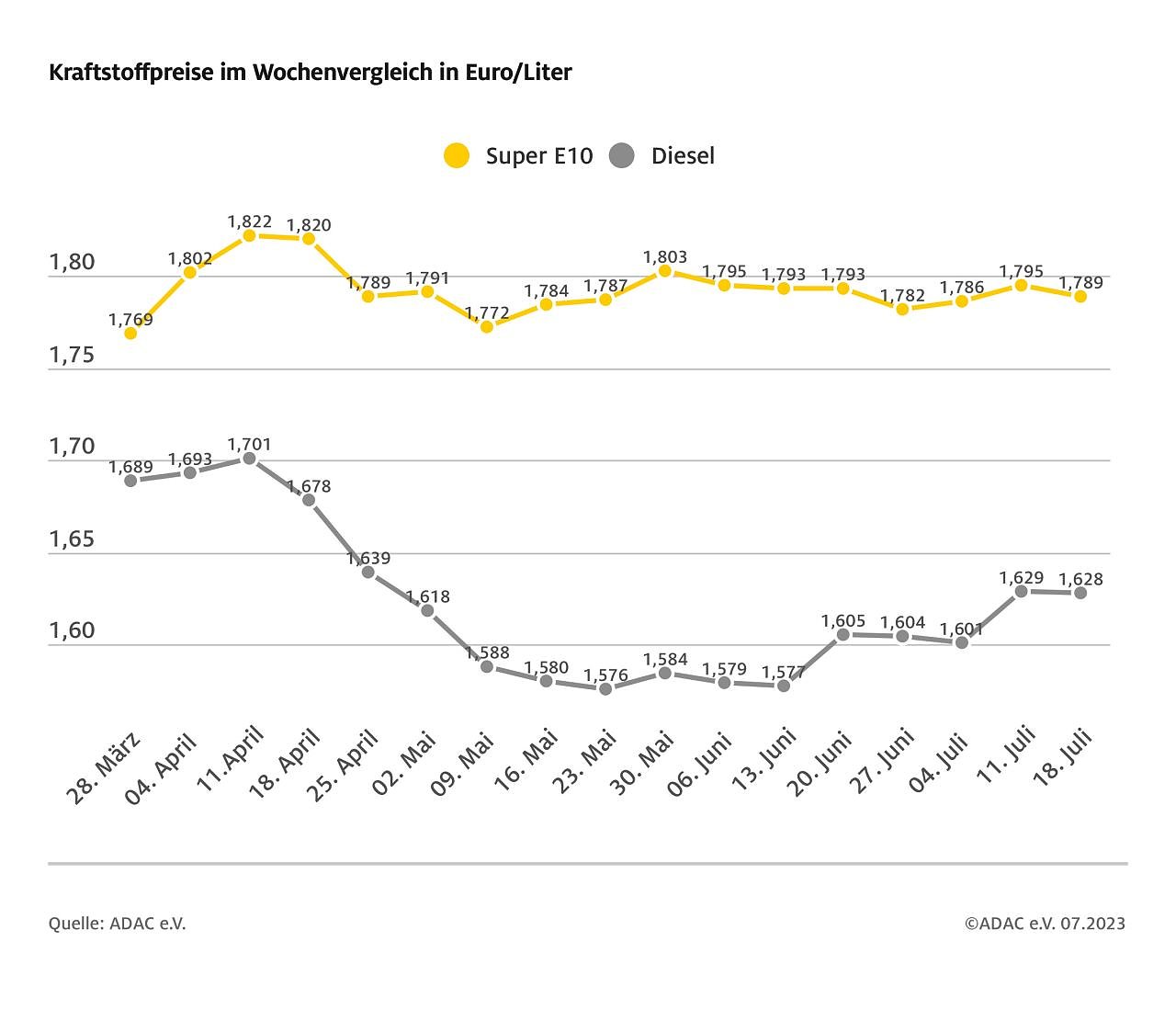 Autor: redLaut aktueller ADAC Auswertung der Kraftstoffpreise in Deutschland kostet ein Liter Super E10 im bundesweiten Mittel 1,789 Euro, das sind 0,6 Cent weniger als vor Wochenfrist.
