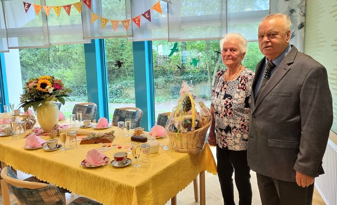 Die Mitarbeiter im Seniorenheim gratulierten ganz herzlich dem Ehepaar und würdigten das seltene Jubiläum mit einer kleinen Feierstunde. So verbrachte das Ehepaar einen schönen und unbeschwerten Tag im Kreis ihrer Lieben.