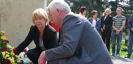 Zum 61. Jahrestag des Kriegsendes gedachte heute die Stadtverwaltung Nordhausen der Opfer. Oberbürgermeisterin Barbara Rinke (SPD) und Bau- und Wirtschaftsdezernent, Dietrich Beyse (CDU) legten gemeinsam mit wenigen Bürgern an der Gedenkstele auf dem Ehrenfriedhof und am Grabmal für den Sowjetsoldaten Kränze nieder.