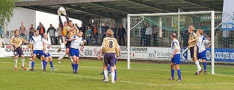 Doch zurück zum Spiel. Die Gäste spielten unerwartet stark und die Nordhäuser Fans mussten 10 Minuten warten, ehe Torsten Klaus den ersten Warnschuss auf das Tor von Sven Weißgärber abgab. Drei Minuten später haute Lars Pohl einen Volleyschuss übers Tor. Ein Spielzug danach die Erlösung. Wieder war es Torsten Klaus, der von einem Torwartfehler profitierte. Doch so muss ein Stürmer agieren. Dann ehrlich gesagt passierte nicht mehr viel. Hier ähnelte das Spiel dem vor einer Woche gegen Gotha. Und wieder hätte sich Wacker kurz vor dem Halbzeitpfiff den Ausgleich eingefangen, Finsterbusch störte jedoch den Angriff.